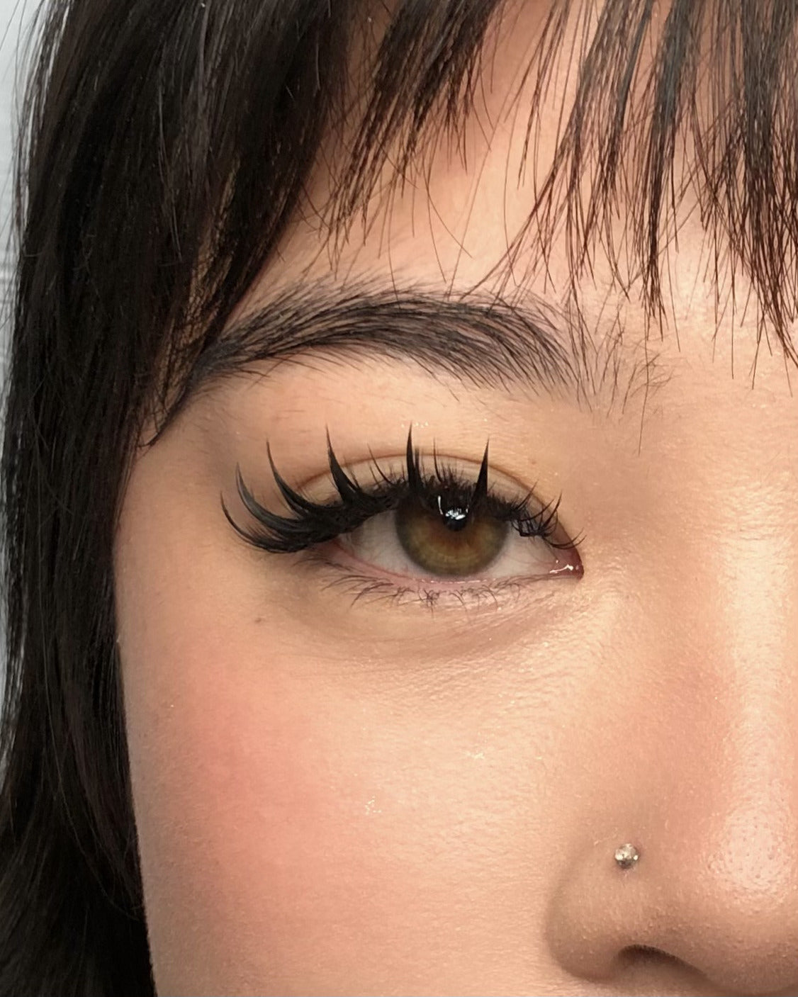 A bold, cartoon-inspired lash set with dramatic, chunky spikes for a striking and expressive look.