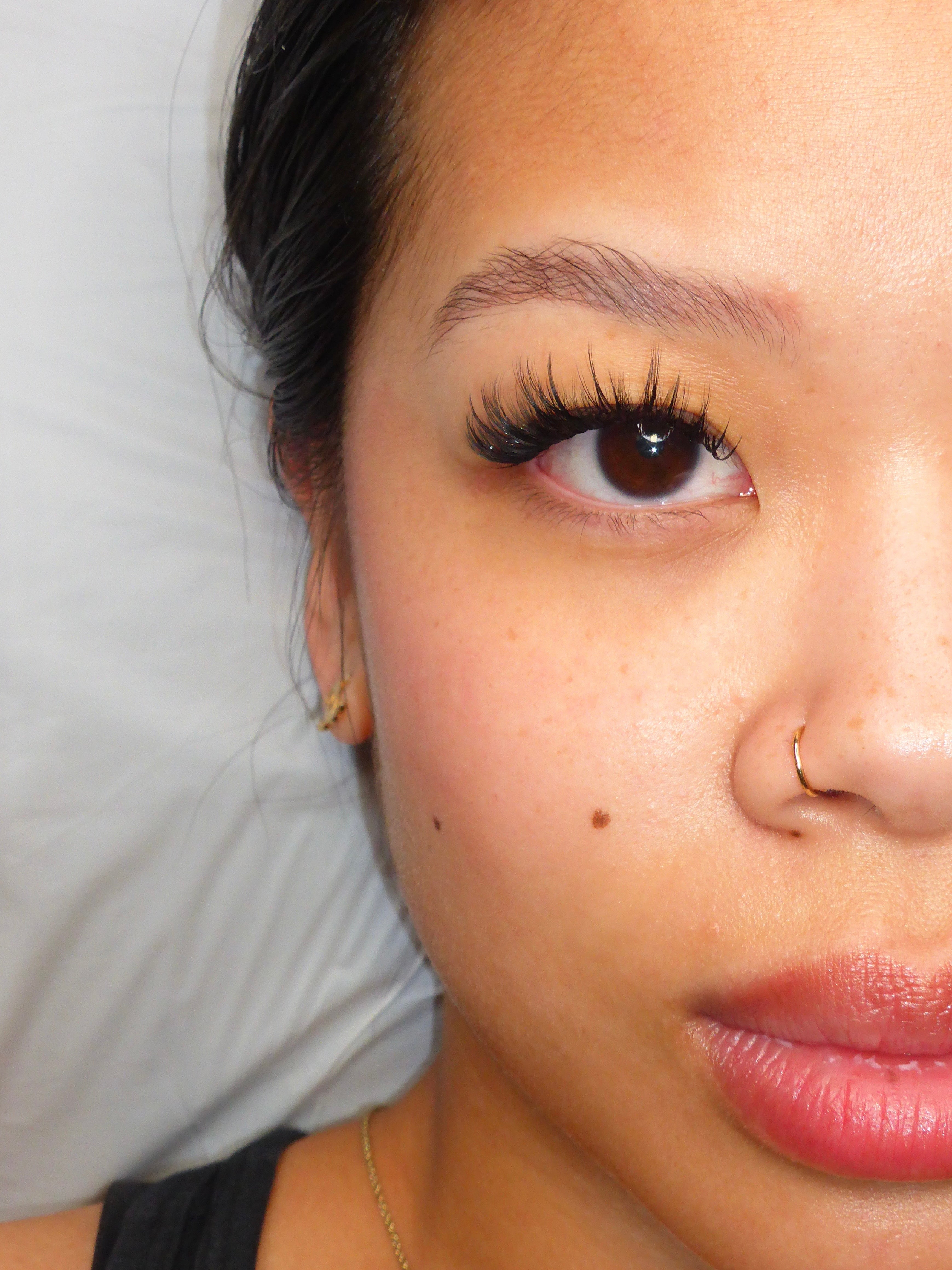 A subtle boost with extensions applied to half of the lash line for a soft lift.